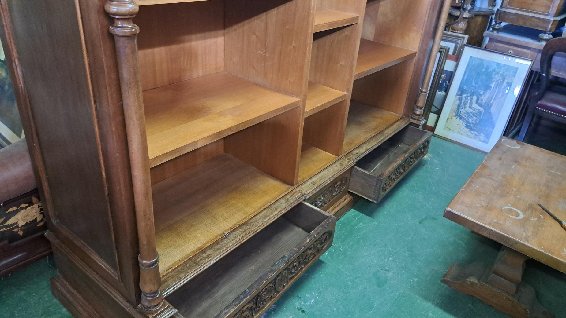 Il mobile è in noce e presenta vari ripiani piu 2 cassetti nella parte bassa