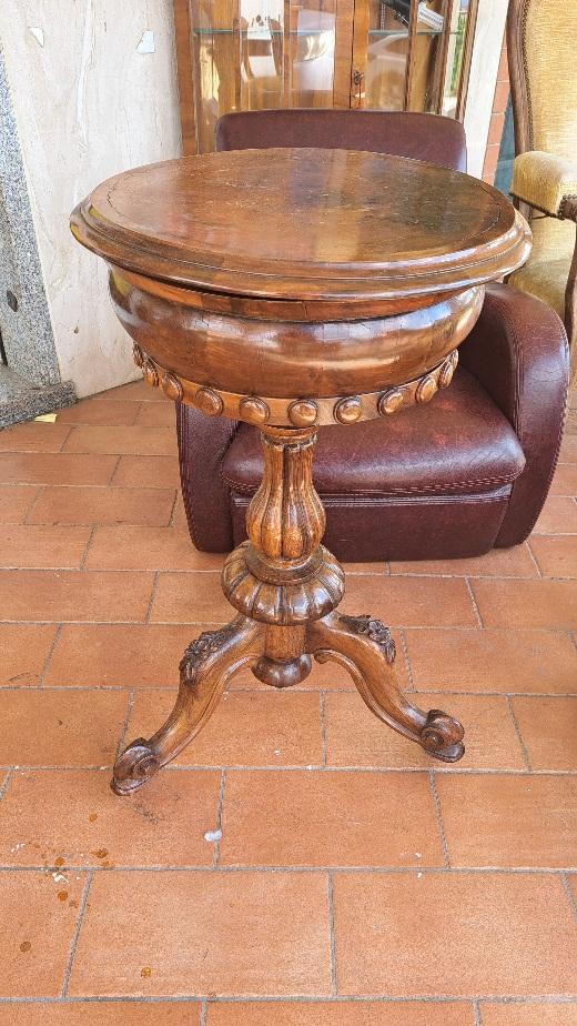 Tavolinetto tondo metà 800 Vittoriano, piano apribile con vani contenitori interni , oggetto particolare e di grande impatto estetico ottime condizioni misura piano 45 altezza 77