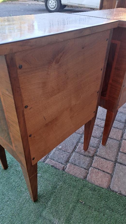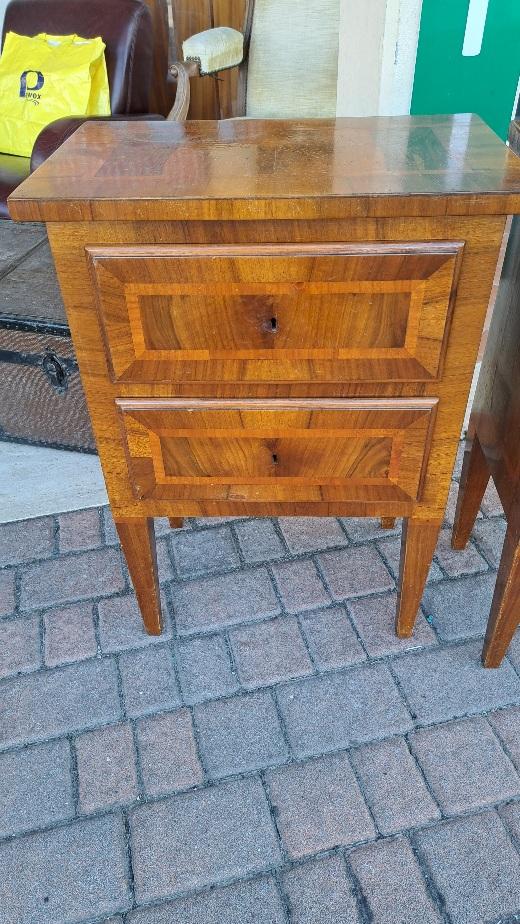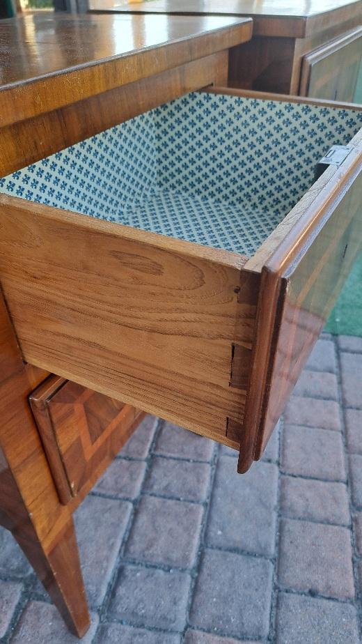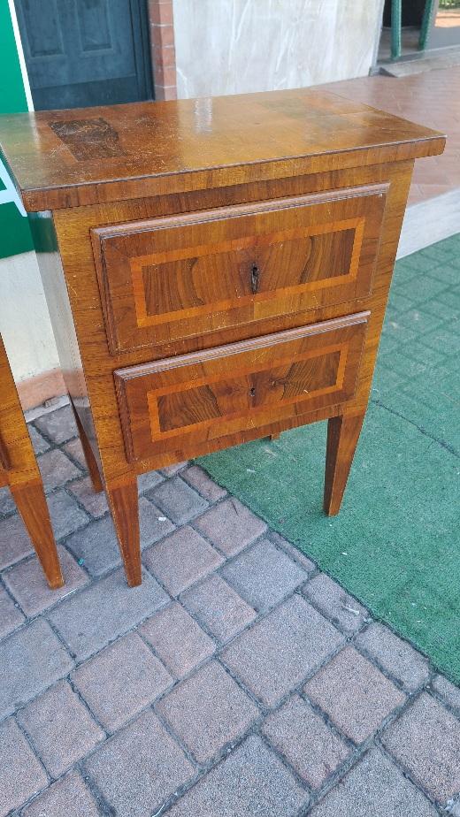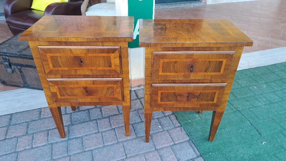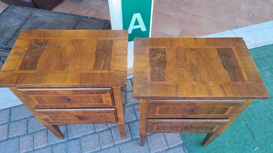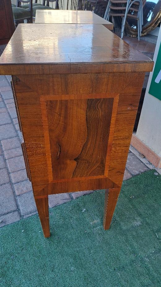 Coppia di comodini italiani anni 60 in stile Luigi XVI struttura in massello lastronata in noce con filettatura su tutti I lati misura 52x33 altezza 73 PREZZO COMPRENSIVO DI RESTAURO