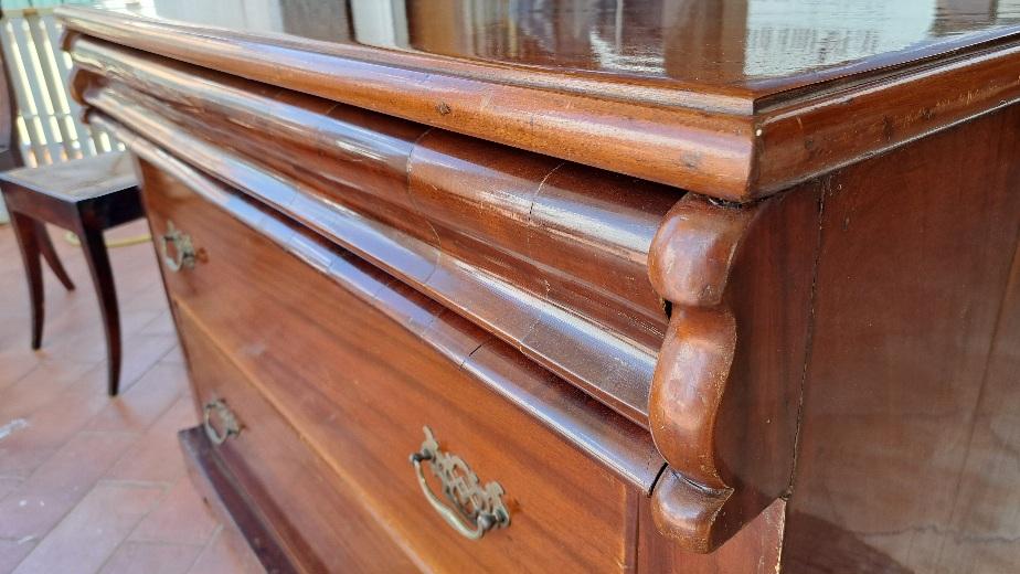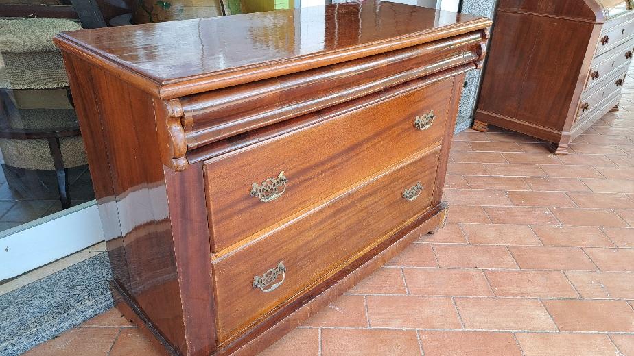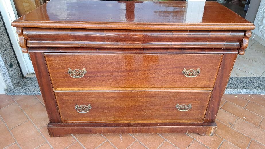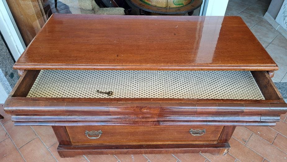 Como' Vittoriano fine 800 in mogano massello 3 cassetti rivestiti internamente maniglieria originale ottime condizioni misura 122x52 altezza 87