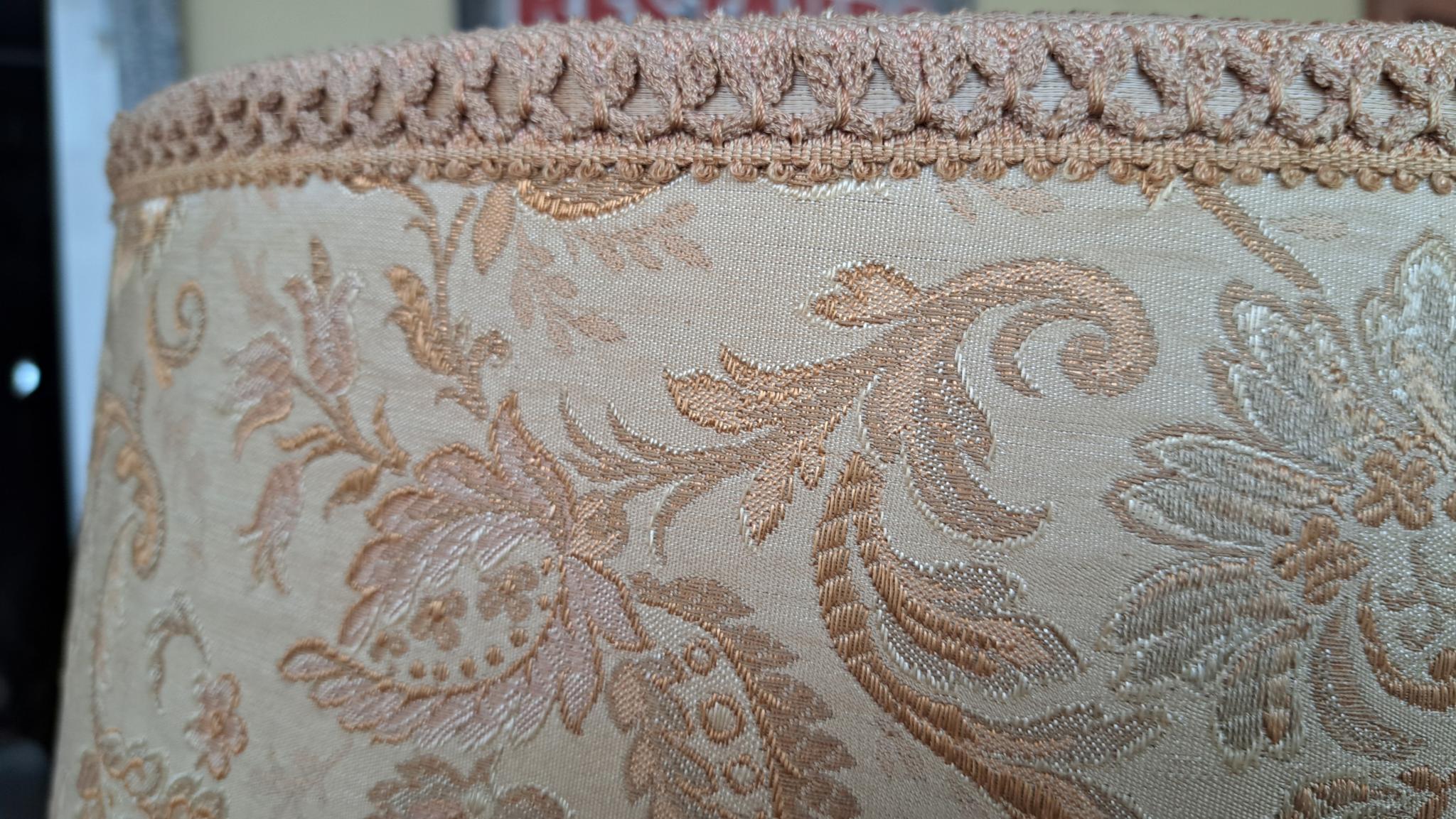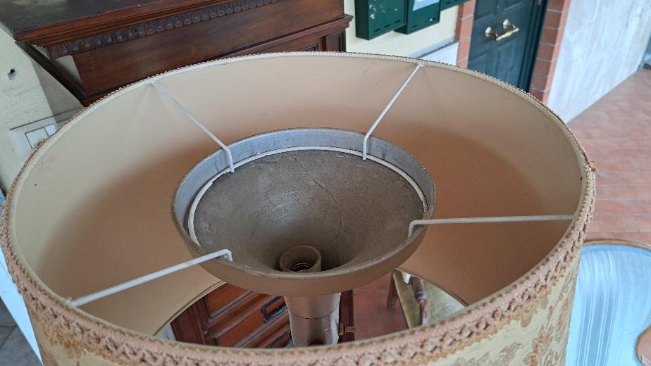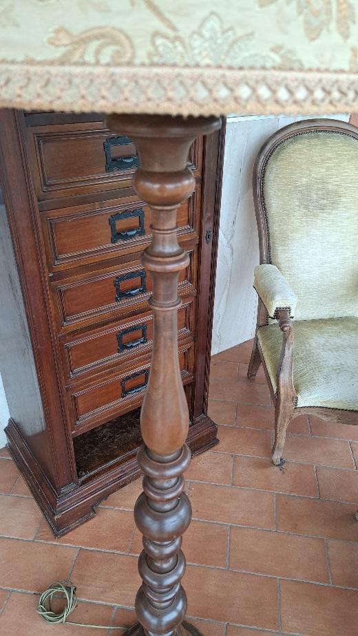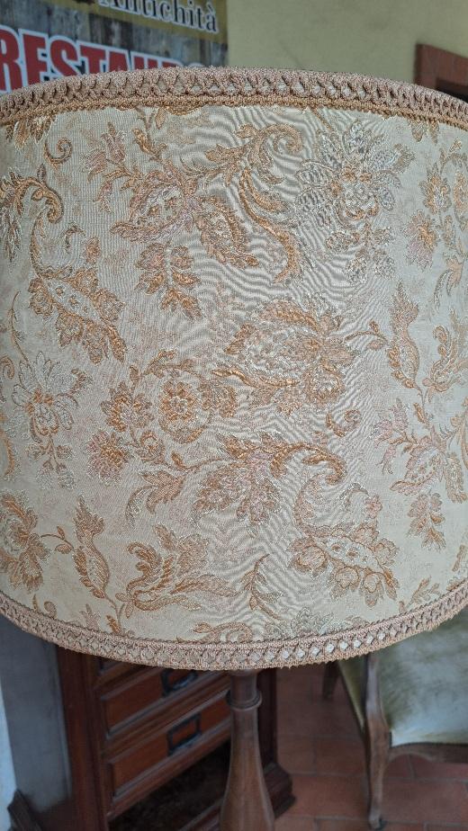 Lampada piantana anni 70 in faggio color noce paralume originale ricamato in ottime condizioni altezza 170 diametro 50
