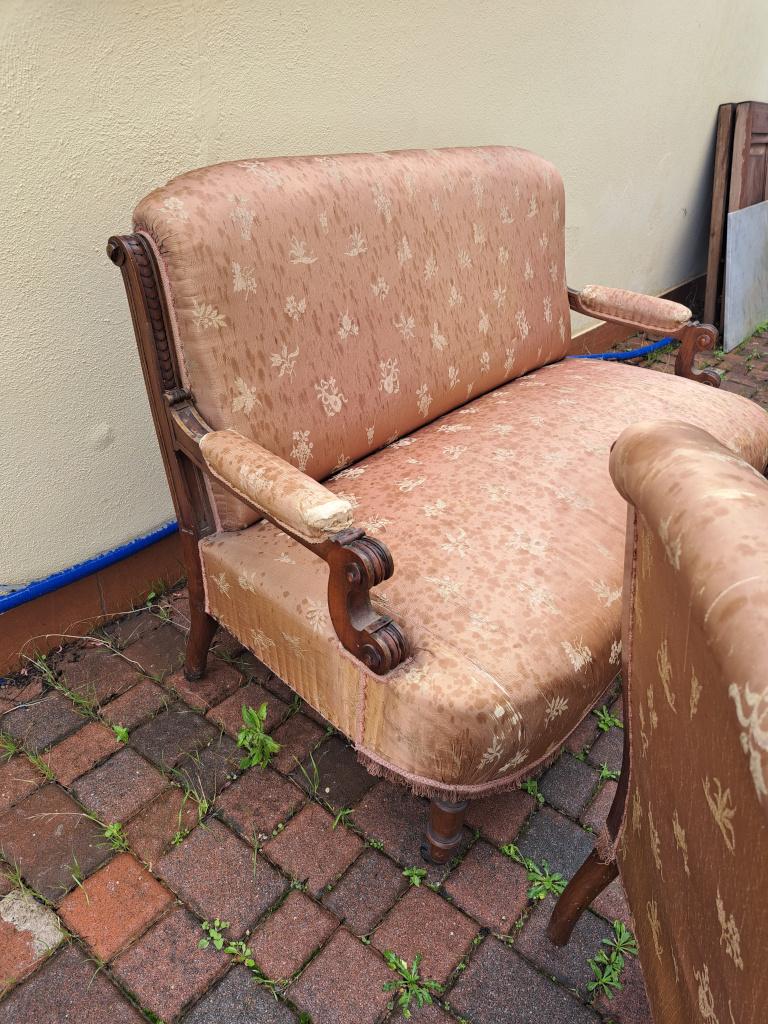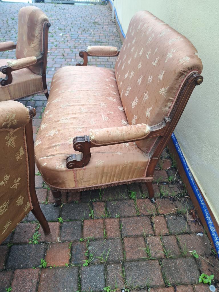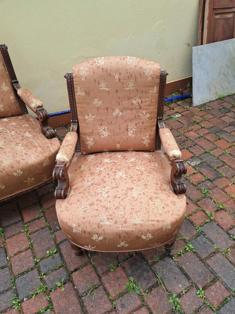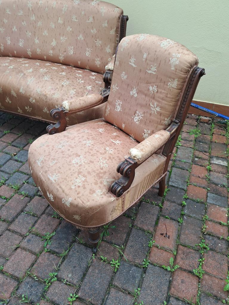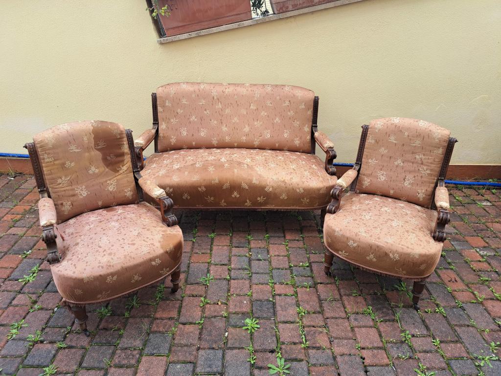 Salotto Umbertino primi 900 italiano in noce composto da divanetto e due poltrone condizioni originali