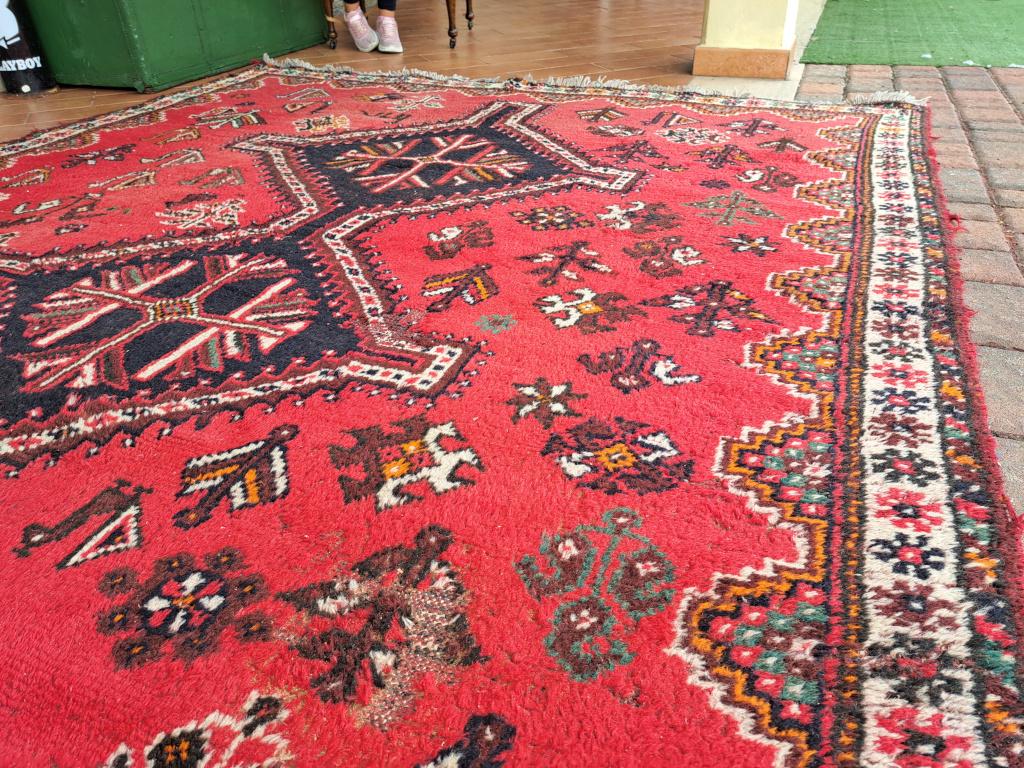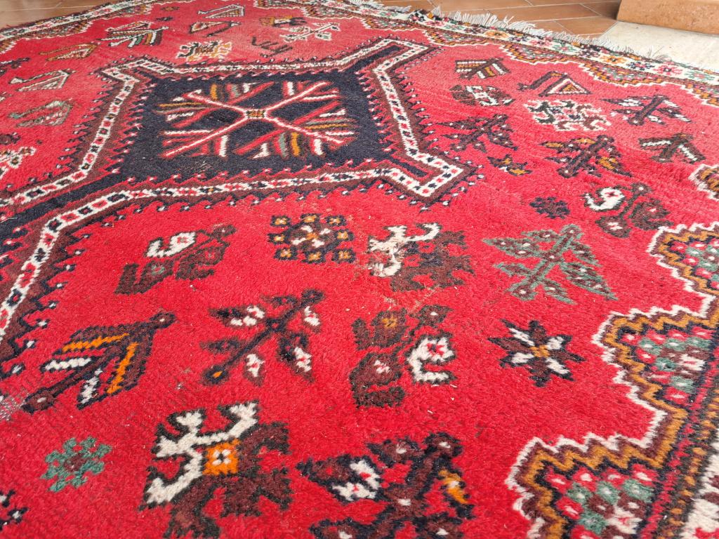 Tappeto Iraniano Shiraz Fars rosso 1960/70..misura 285x200 piccolo difetto come visibile in foto