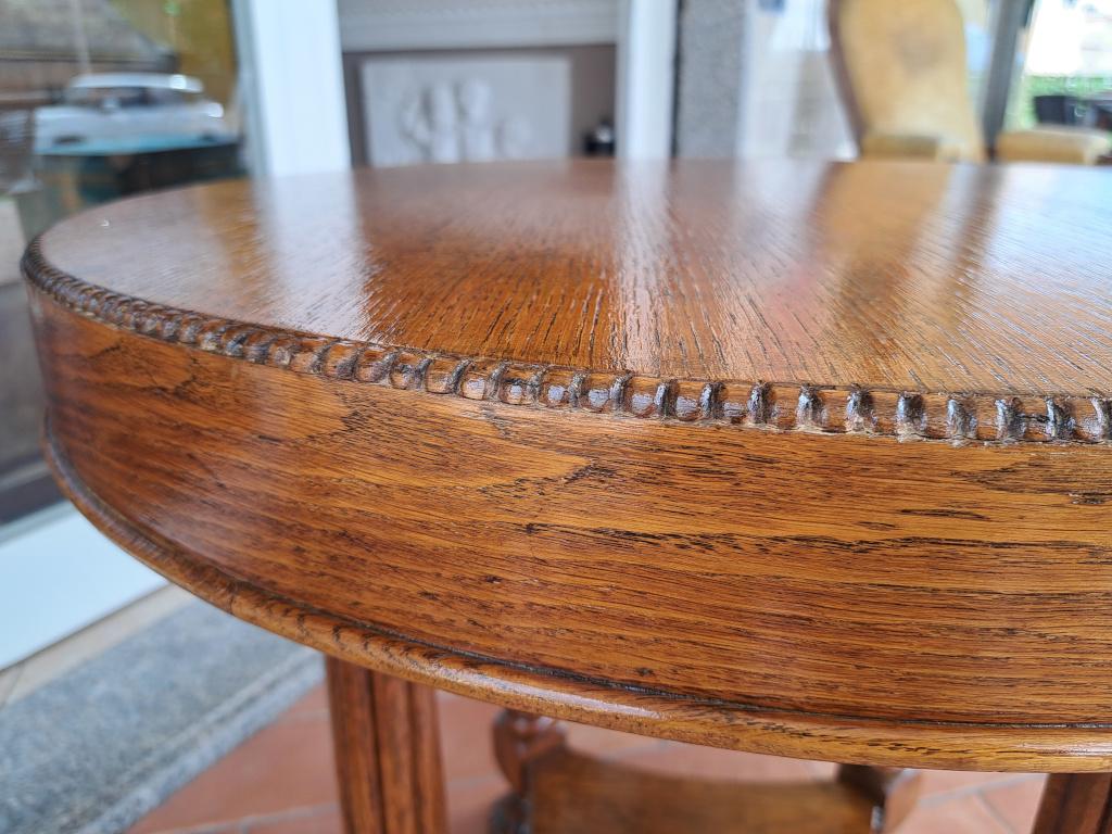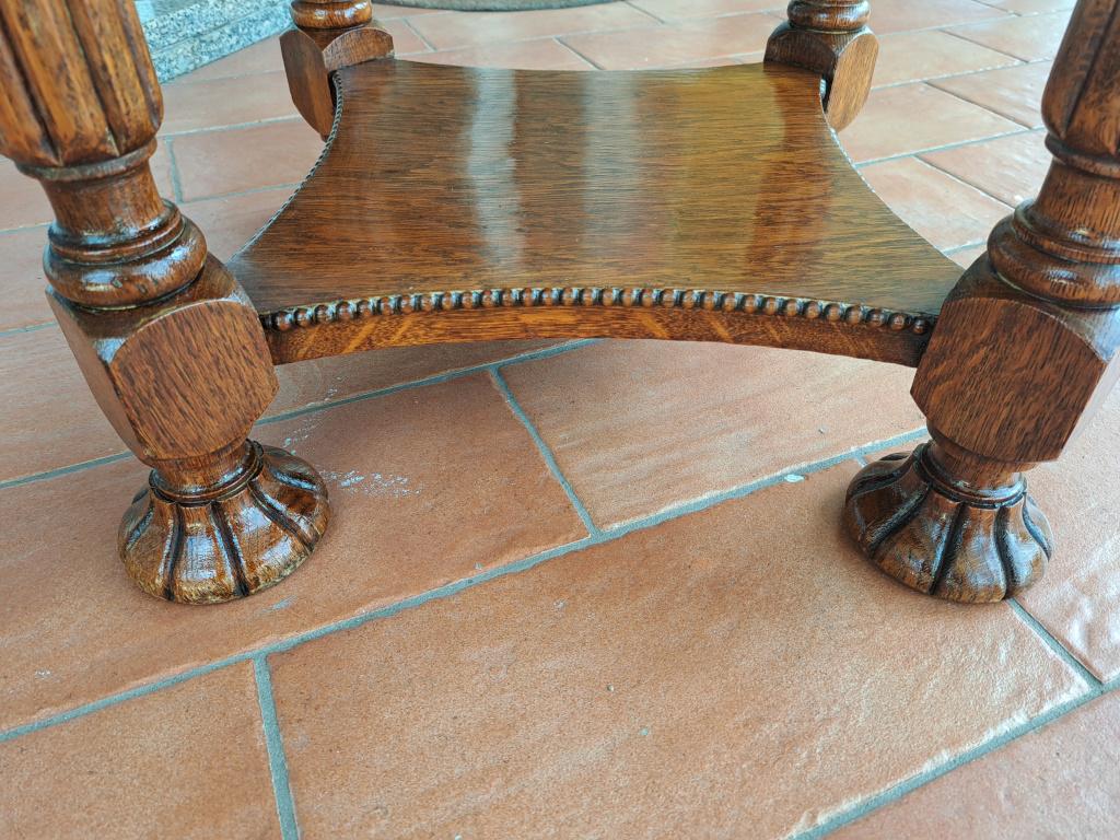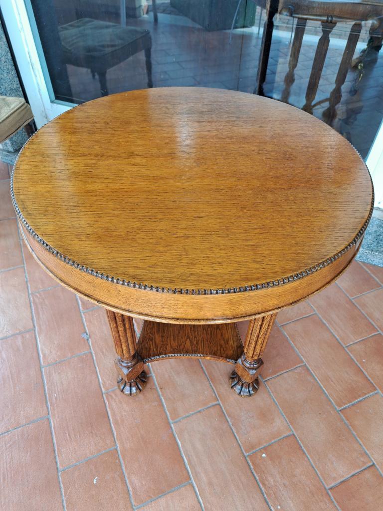Tavolo tondo da salotto inglese in rovere diametro piano 70cm altezza 67 completamente restaurato
