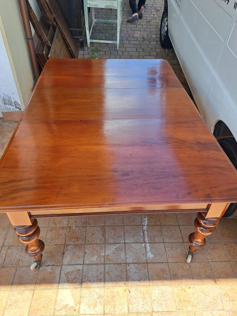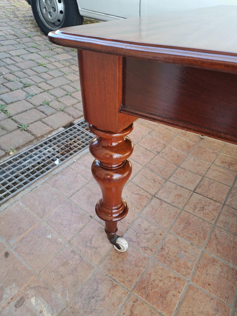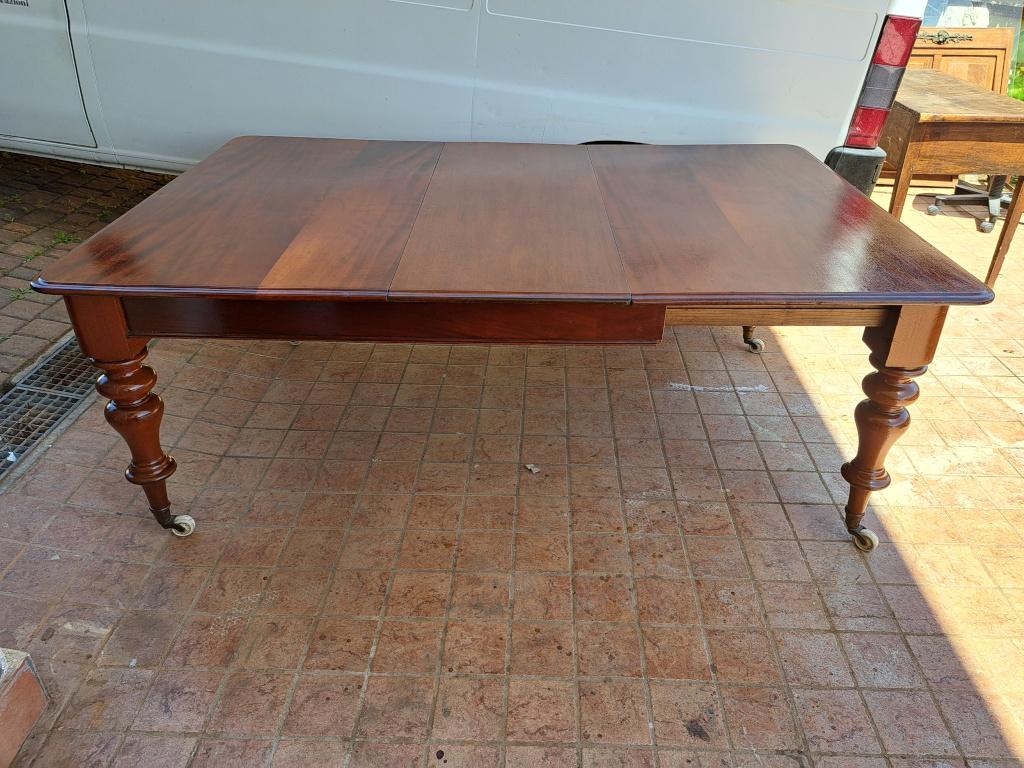 Tavolo Luigi Filippo fine 800 in mogano massello prolunga originale rotelle originali il tavolo è completamente restaurato chiuso misura 150x132 aperto arriva a 2 mt