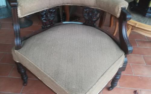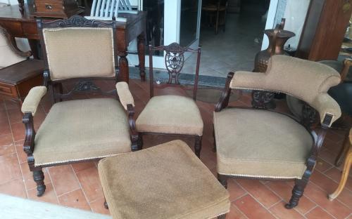 Salotto Vittoriano fine 800 completamente originale composto da poltrona, poltrona angolare, seggiolina e pouf tutto in mogano rotelle originali