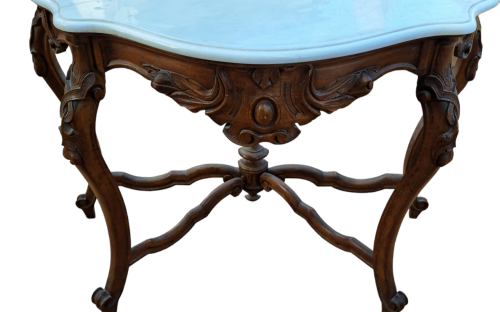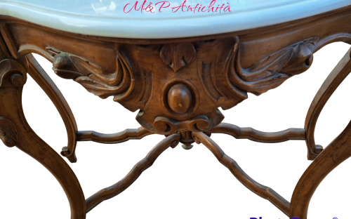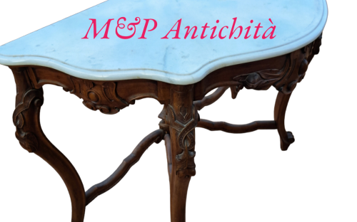 Consolle Luigi Filippo primi 900 in noce massello piano in marmo bianco 122x60 altezza piano 88