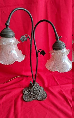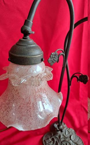 Lampada liberty in bronzo con vetri rosa originali altezza 70 cm ottime condizioni