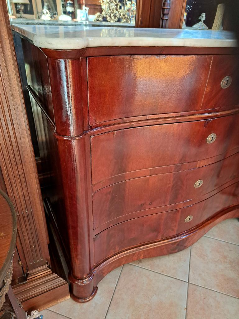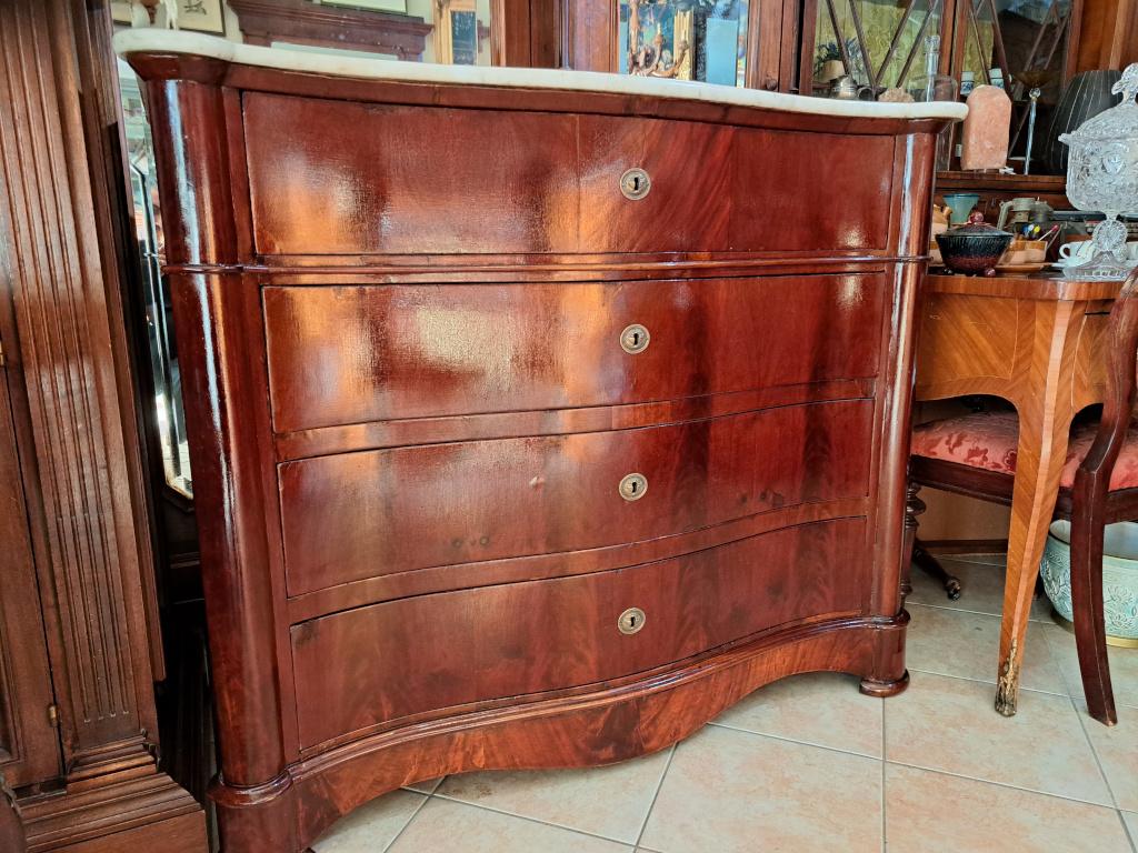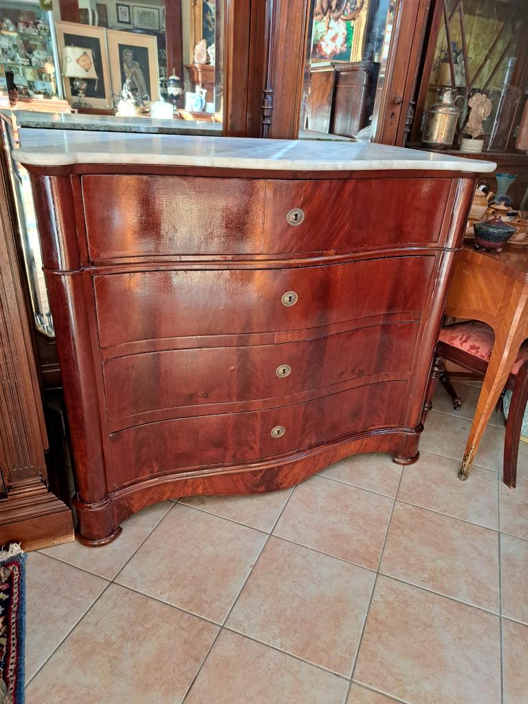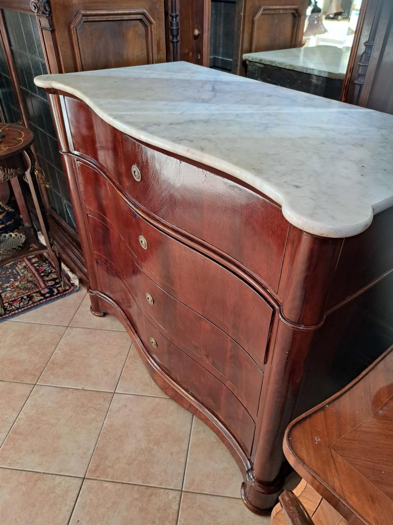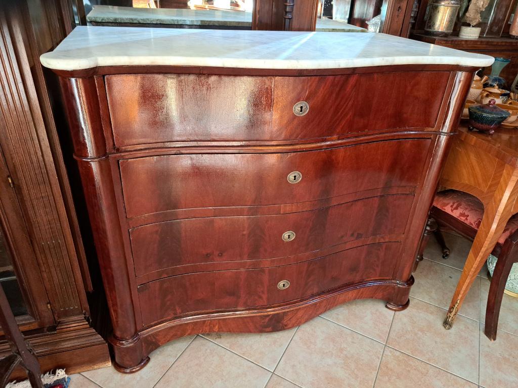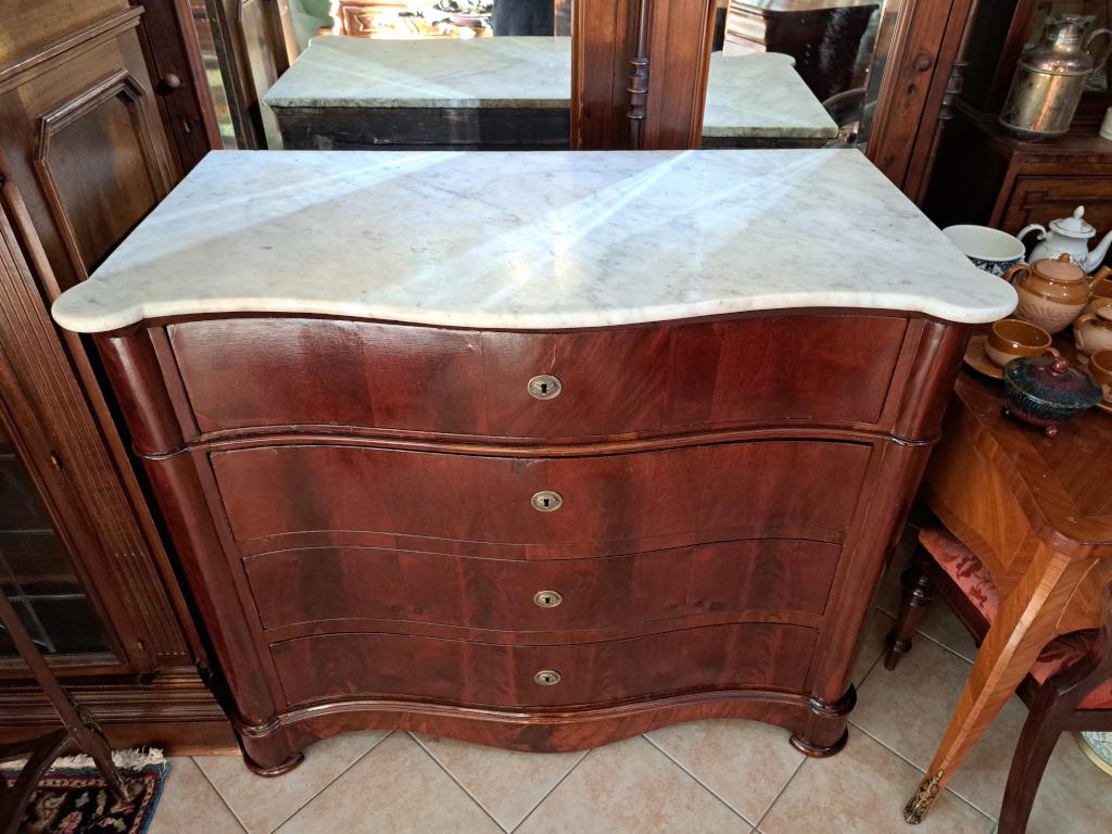 Comò italiano Luigi Filippo seconda metà 800 in piuma di mogano piano in marmo bianco di Carrara ottime condizioni generali misura 125x63 altezza 107