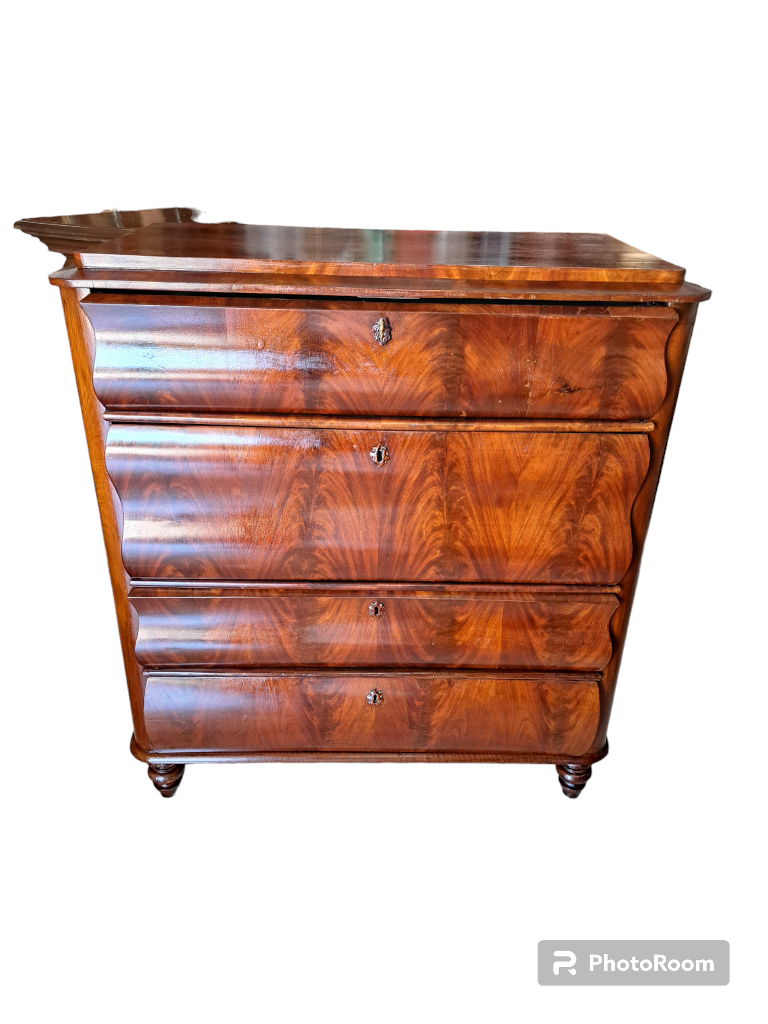 Comò Biedermeier fine 800 Austriaco in piume di mogano 4 cassetti ottime condizioni misura 100x50 altezza 107