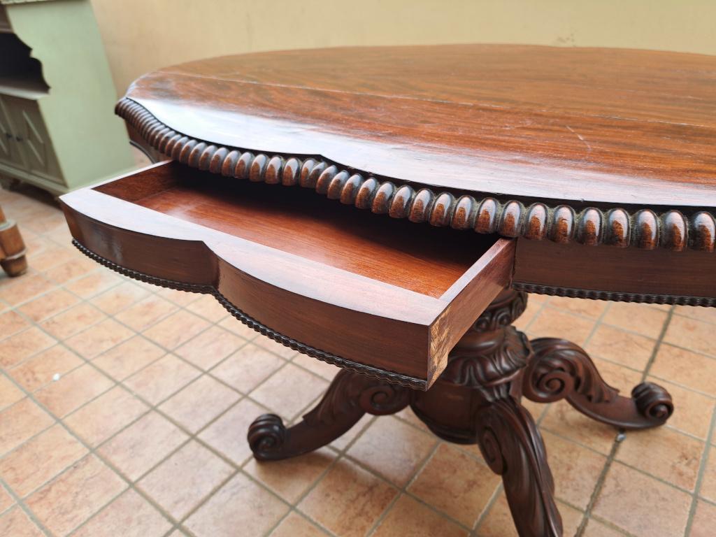 Tavolo da salotto inglese fine 800 in mogano massello misura 134x80 altezza piano 74 ha 2 cassettini laterali