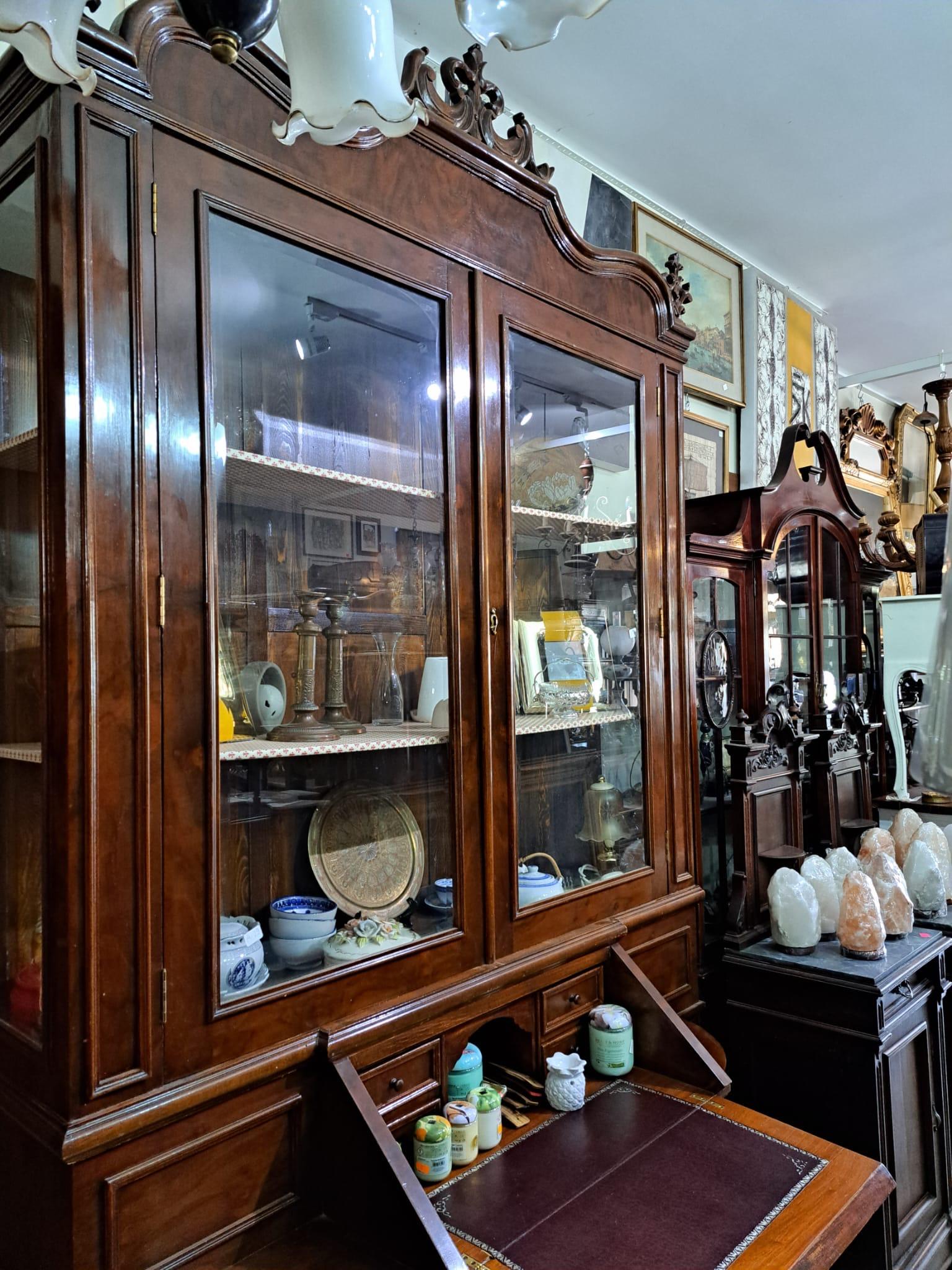Trumeau francese in noce anni 30 piano a ribalta con tappezzeria in pelle bordeaux misura 155-70 altezza 270 il mobile si presenta in ottime condizioni generali