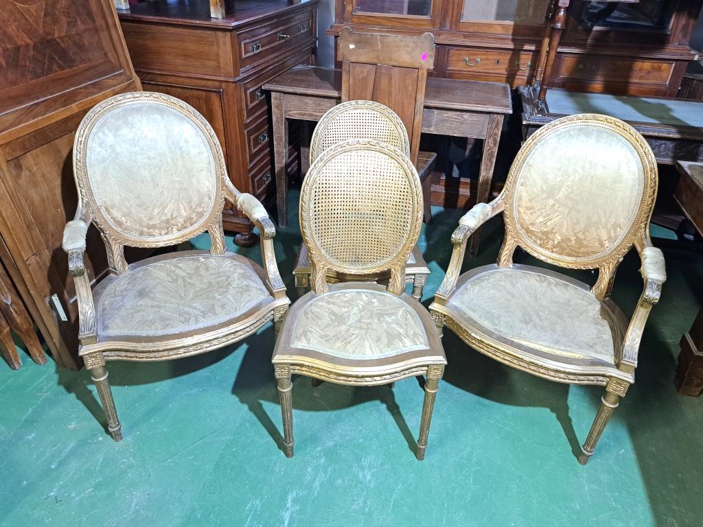 Salottino liberty dorato composto da due poltroncine con bracciolo e due sedie condizioni originali
