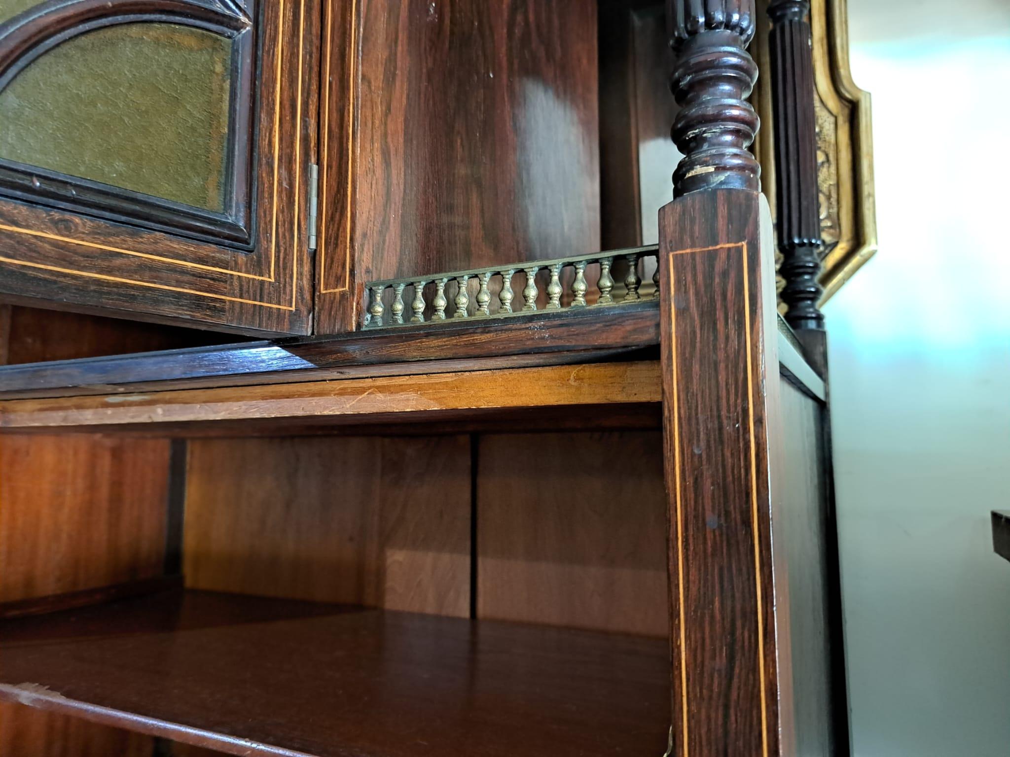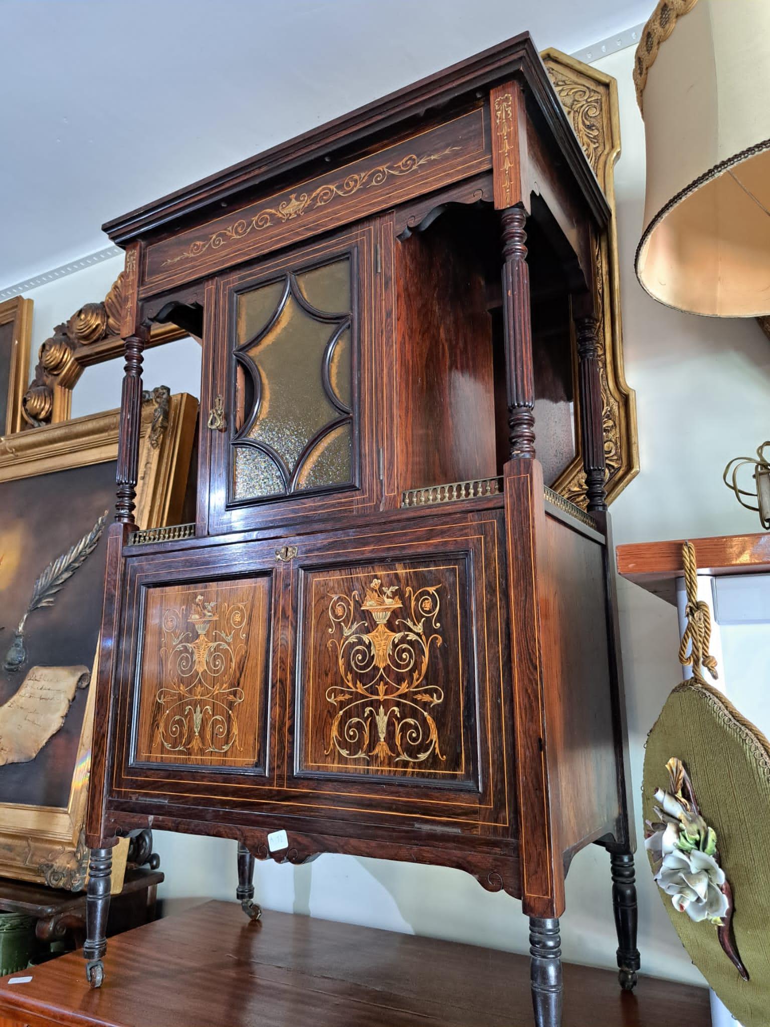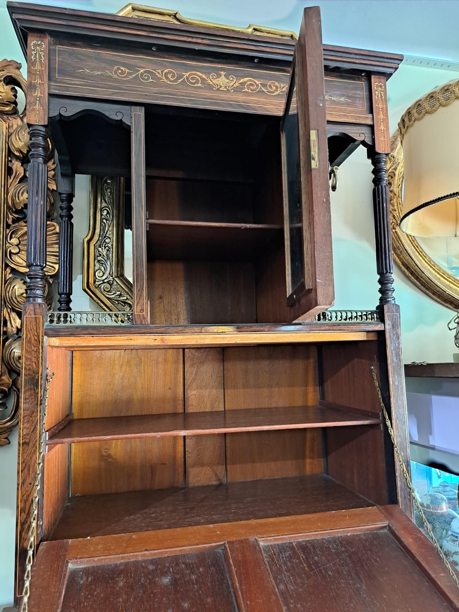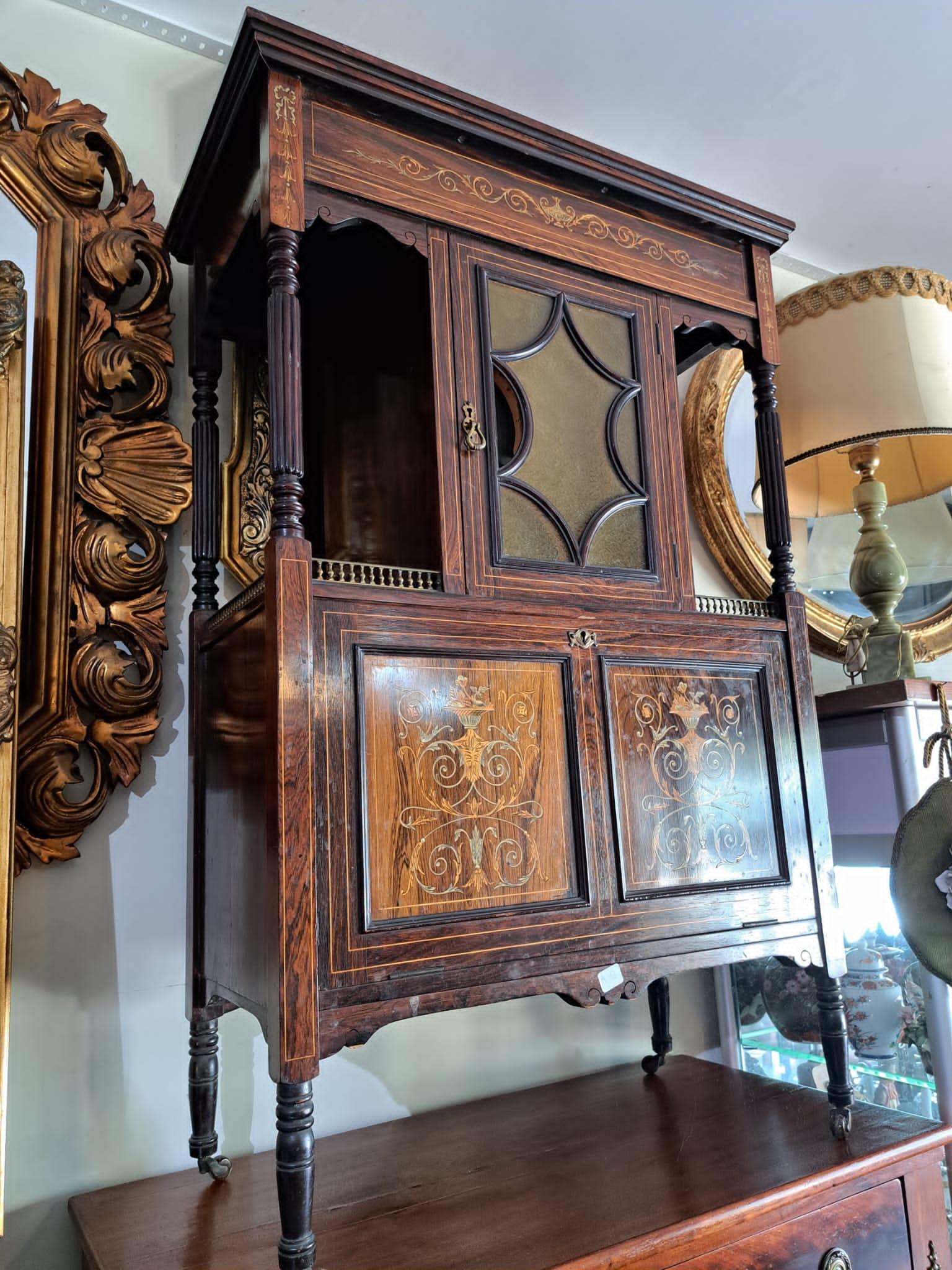Consolle edoardiana primi 900 in palissandro con inserti in osso un sportellino è anta a ribalta misura 72-35 altezza 110