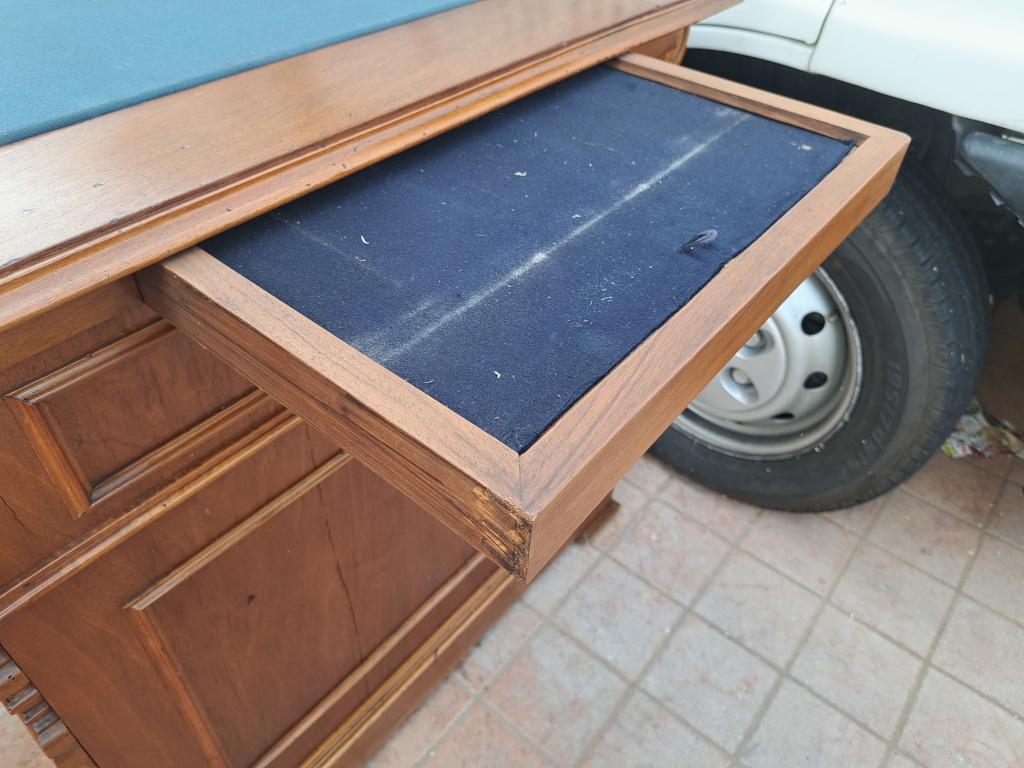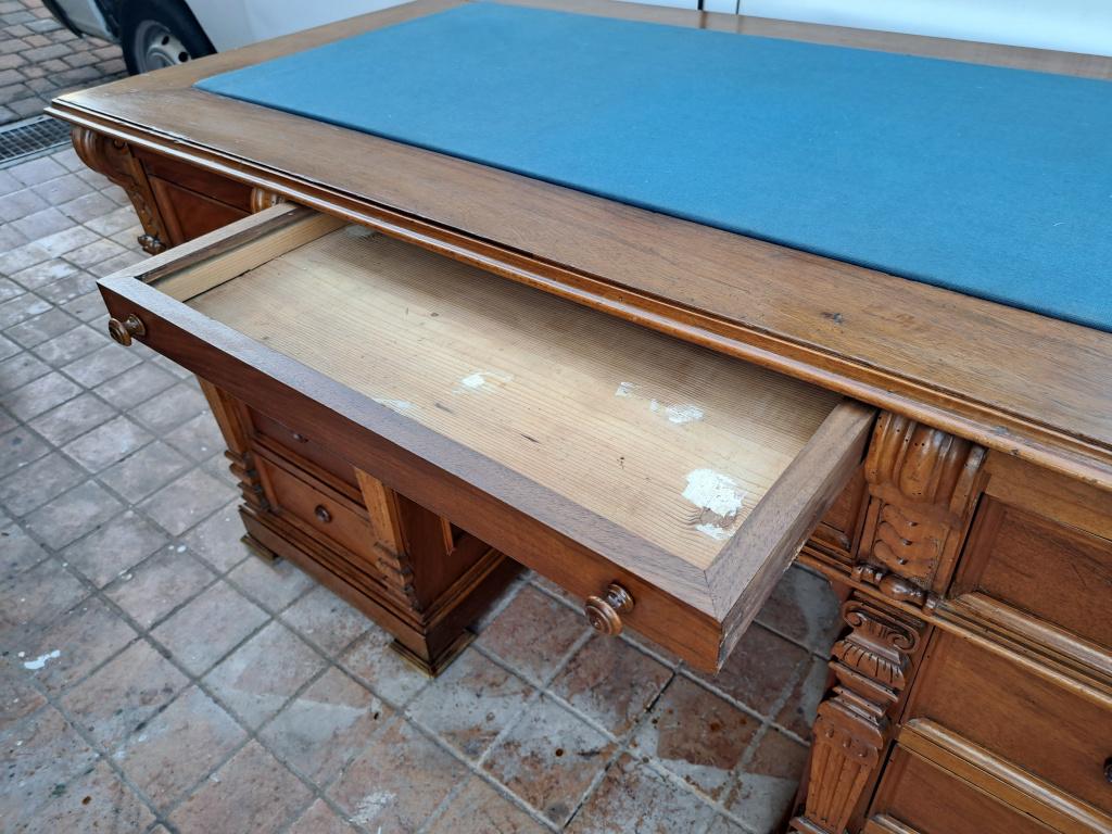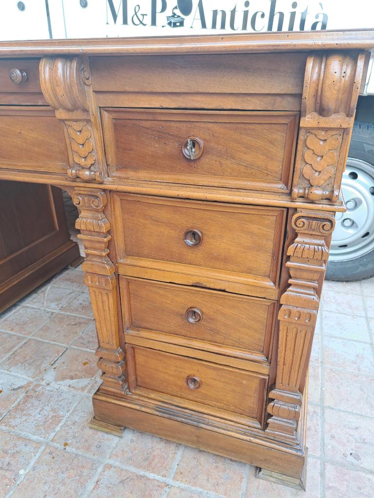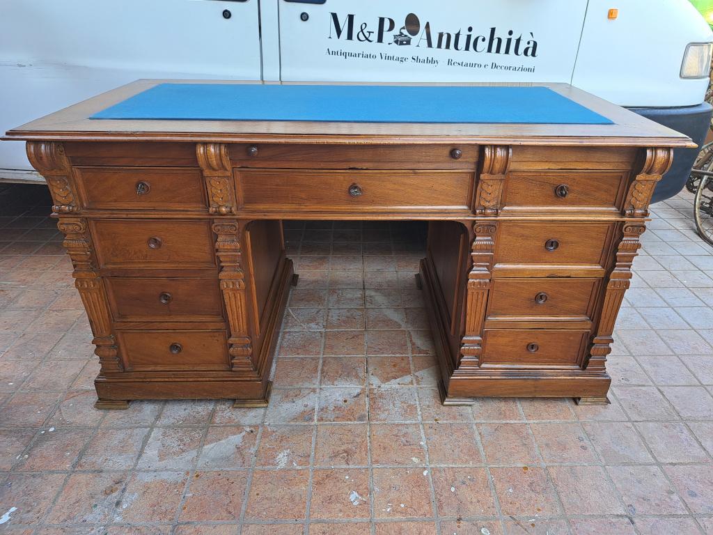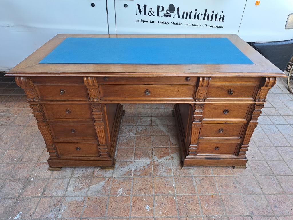 Scrivania italiana primi 900 in noce da centro vari cassetti e piani estraibili misura 155x82 altezza 82