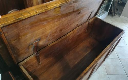 Bellissima cassapanca austriaca del 700 in olmo massello completamente restaurata anche internamente cerniere in ferro originali nessuna parte sostituita mobile di grande qualità e forte impatto visivo misura 170-63 H 65