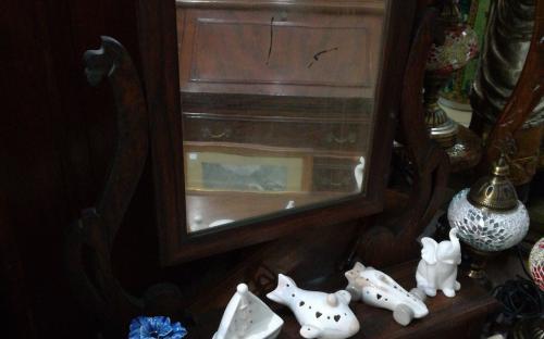 Toletta specchiera da tavolo fine 800 in castagno cassetto specchio originale misura 63-17 H 66